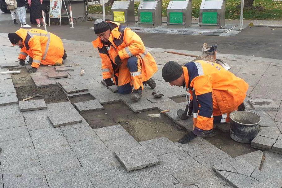 Since the beginning of 2024, the enterprise's workers have completed repairs on paving – 141 sq.m, tiled surfaces – 1162.02 sq.m, and stairs – 16.4 sq.m. Pothole repairs on the roadway have totaled 39556.97 sq.m, while asphalt paving of the roadway reached 5526.59 sq.m and sidewalks 3258.1 sq.m.