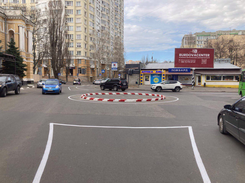Specialists from the KУ "SMEP" have marked the road, installed an inner ring made of rubber traffic barriers, and set up the appropriate road signs 4.10 "Roundabout".