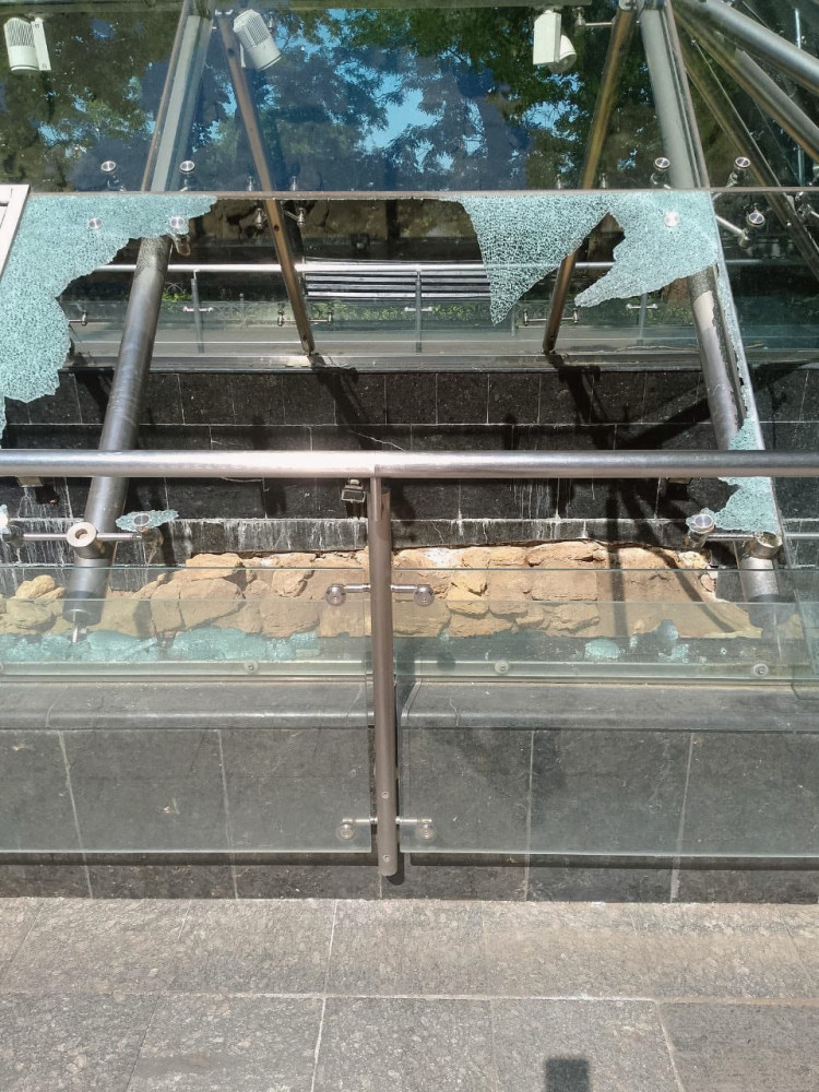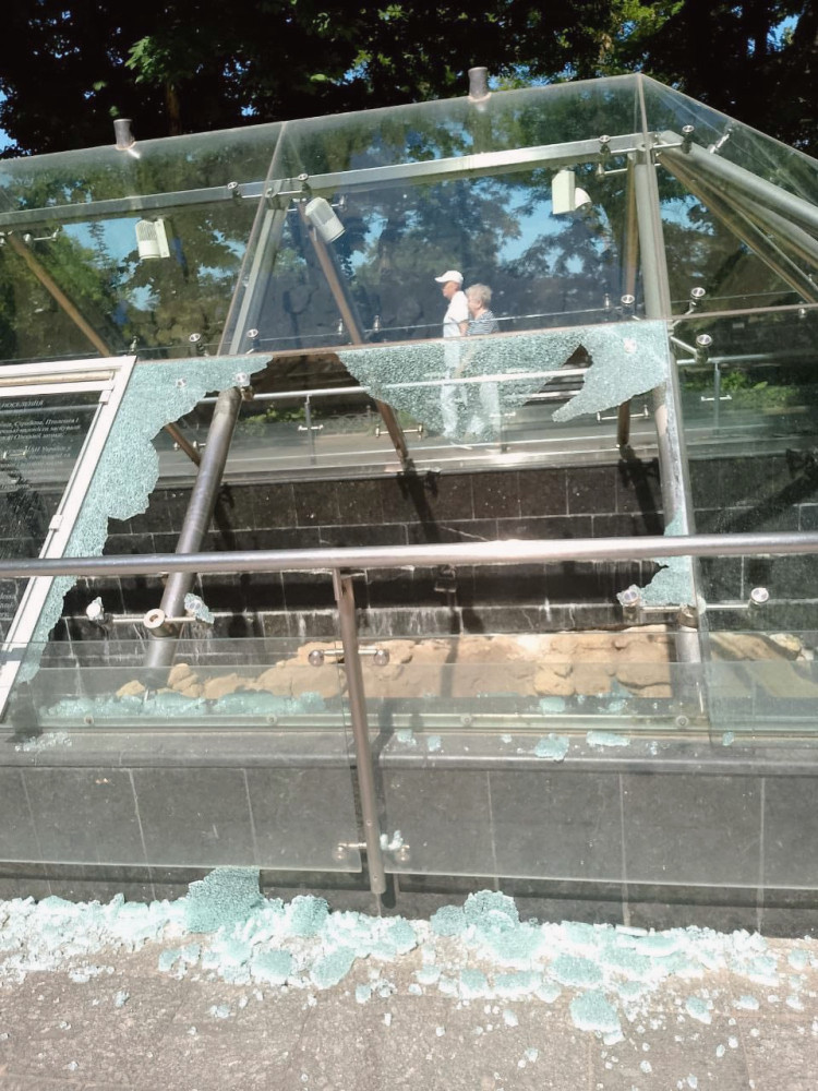 Last weekend, municipal workers found broken glass in the sarcophagus above the ancient Greek exhibition on Primorsky Boulevard in Odessa.