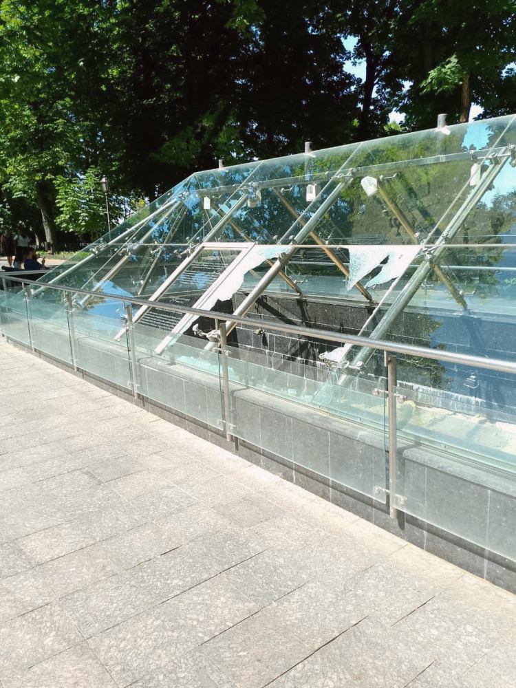 The viewing pyramid of the mini-museum has been a target of vandalism multiple times: the last such incident occurred in the winter of 2016. Moreover, from time to time, some of our fellow citizens fill the exhibits of the mini-museum with scraps of paper and other trash.