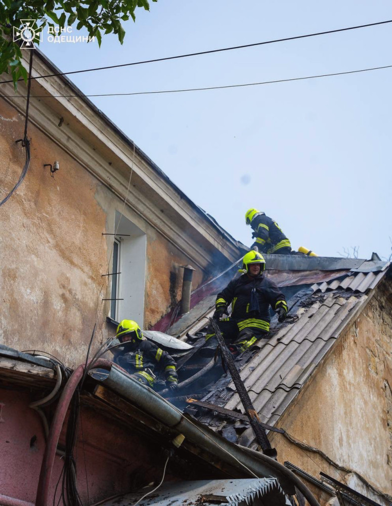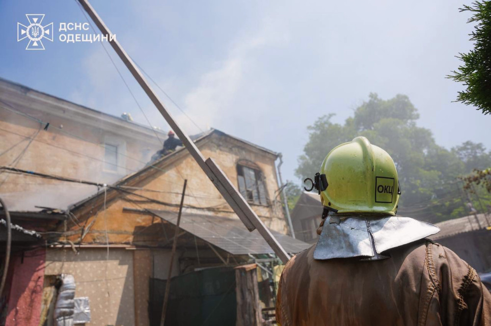 The incident occurred on Mechnikov Street, where the roof of a two-story residential building was ablaze.