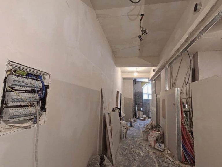 Renovation works are currently in progress, including the installation of internal partitions, finishing works, and setting up engineering communication networks, among other tasks.
