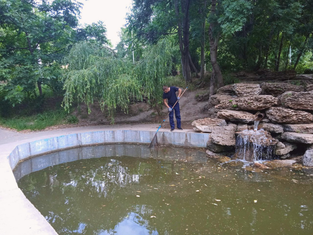 Regular cleaning of the water surface from fallen leaves and debris, sweeping the adjacent walkways, mowing grass in sanitary zones, repairing and painting landscape elements, and cleaning drainage systems are part of their routine.