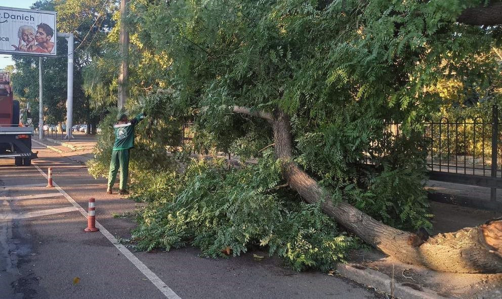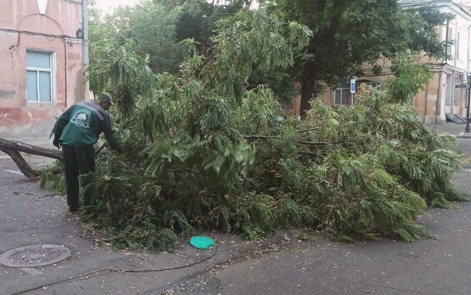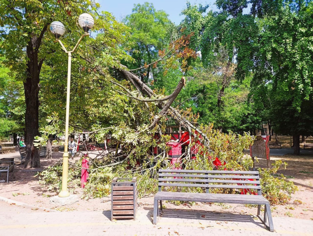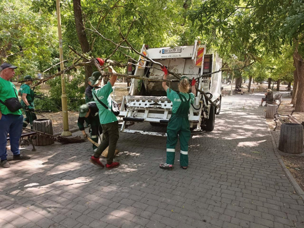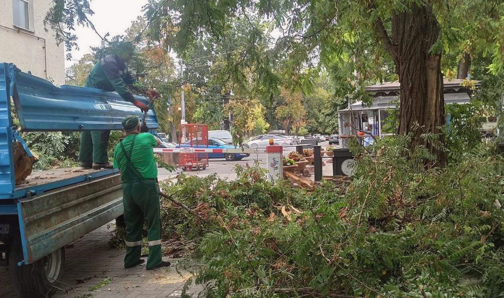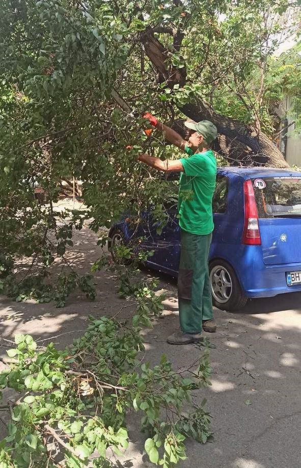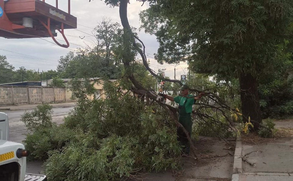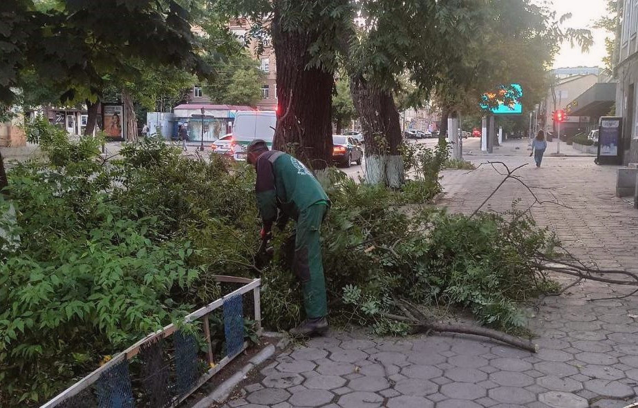 Specialists from the municipal enterprise «Miskzelentrest» and other city services swiftly undertook the task of removing the storm's aftermath. They sawed and transported fallen trees and cleared the streets of smaller branches and debris.