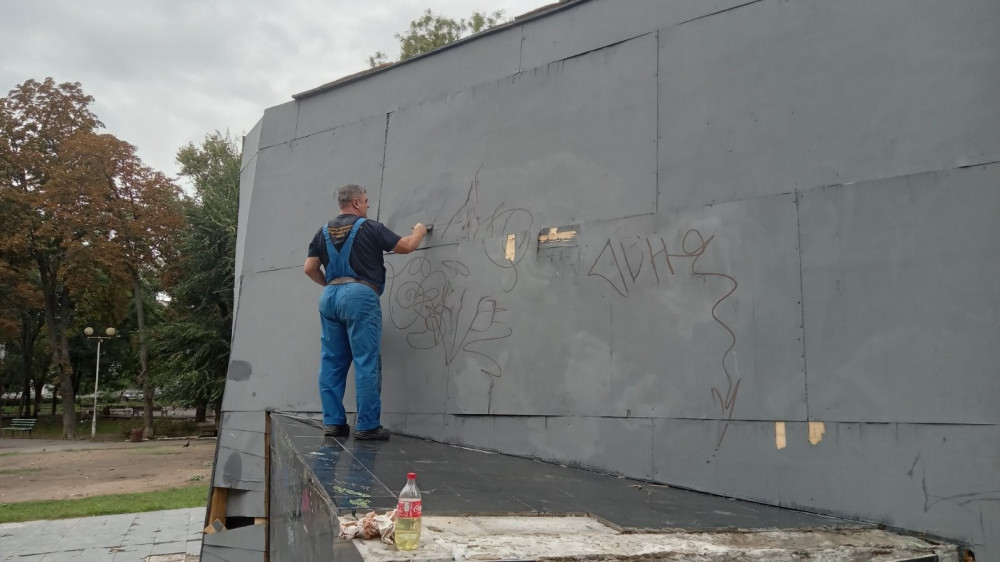 Фахівці КП «Сервісний центр» швидко реагують на акти вандалізму, відновлюючи та ремонтуючи пошкоджені елементи, а також замальовуючи написи.