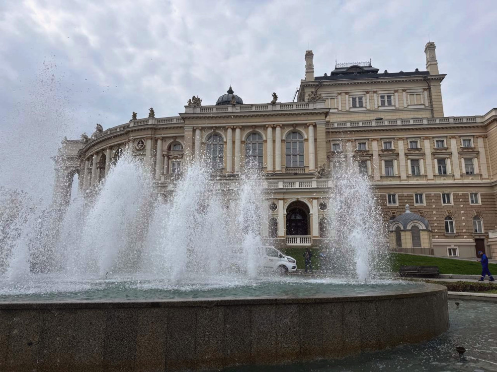 Експерти комунального підприємства «Сервісний центр» запустили ще один фонтан, який став улюбленцем одеситів. Він розташований на Театральній площі, неподалік Одеського оперного театру, і вважається одним з найкрасивіших у місті.