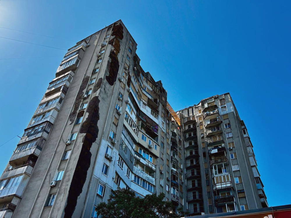 Жителі будинку на вулиці Князя Ярослава Мудрого, який зазнав пошкоджень внаслідок атаки безпілотника в ніч на 1 травня, поступово повертаються до своїх помешкань.