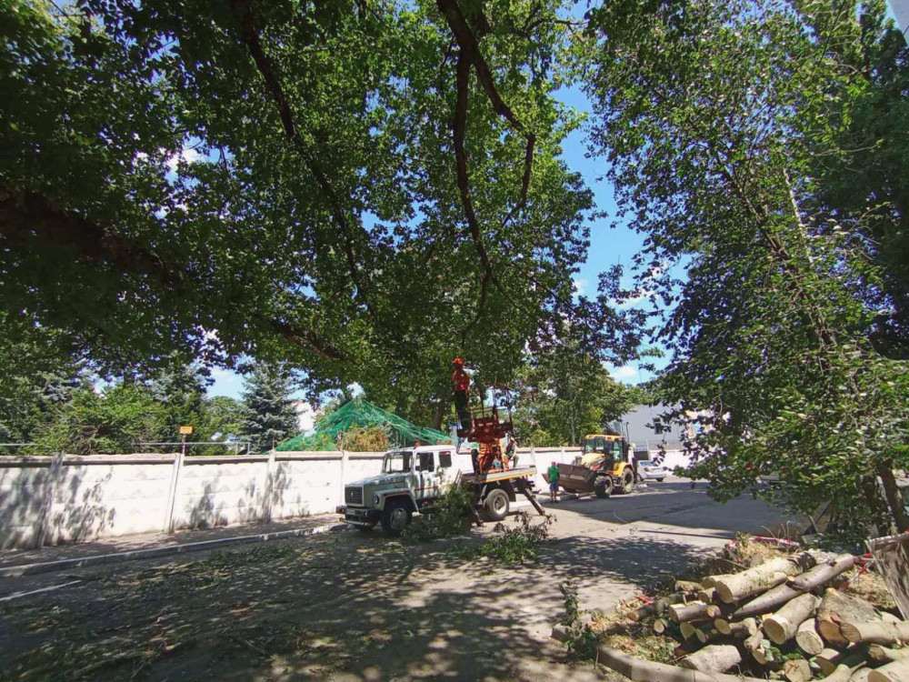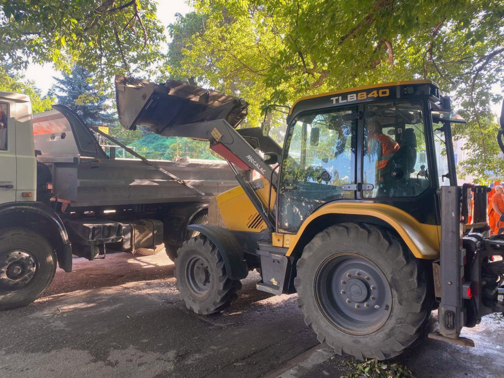 У ліквідації наслідків задіяно близько 200 працівників комунальних служб та важка техніка (12 одиниць): 3 автовежі, 4 самоскиди, 2 екскаватори, 2 прибиральні машини та 1 трактор.
