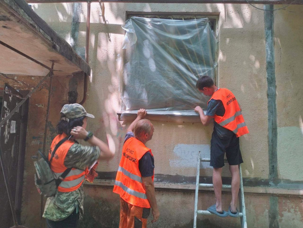 Спеціалісти підприємств, таких як «ЖКС «Черьомушки», «ЖКС «Вузівський», «Міські дороги» та «Міськзелентрест», швидко закривають вибиті вікна у постраждалих будинках захисними матеріалами, прибирають уламки і займаються очищенням прилеглих територій.