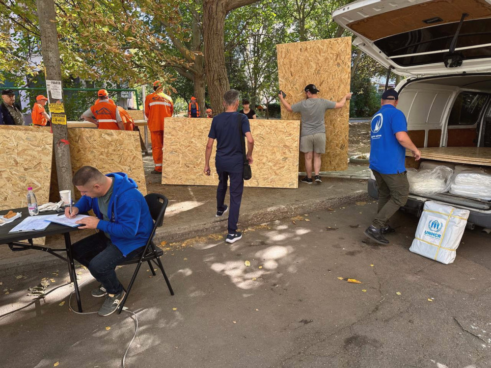 На місці працюють БФ «Вітри Змін», «Nova Ukraina», ГО «Десяте квітня», БФ «Рада міст», БФ «Їжа життя. Одеса», а також міжнародна організація IRC. Вони забезпечують мешканців гуманітарною допомогою, плівкою для вікон, гарячими обідами та надають юридичні консультації.