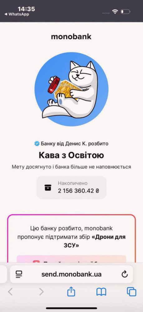 Зібрані кошти були перераховані через «Монобанк» на рахунок Благодійного фонду «Південний-берег».