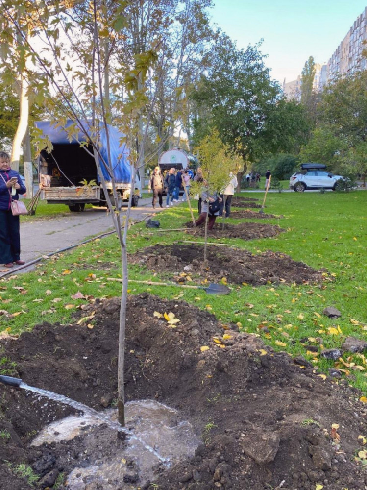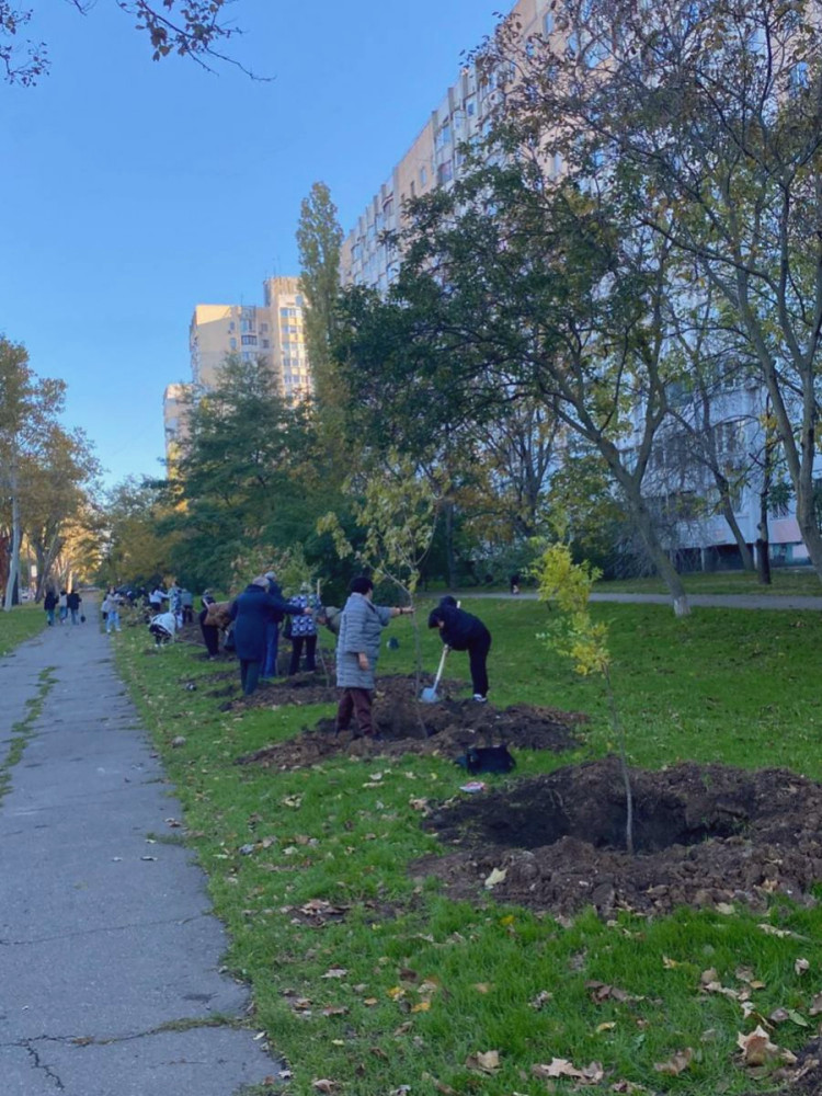 Сьогодні, 25 жовтня 2025 року, в Одесі на проспекті Князя Володимира Великого (між зупинками вул. Кишинівської та вул. Марсельської) відбувся захід із висадження молодих дерев.