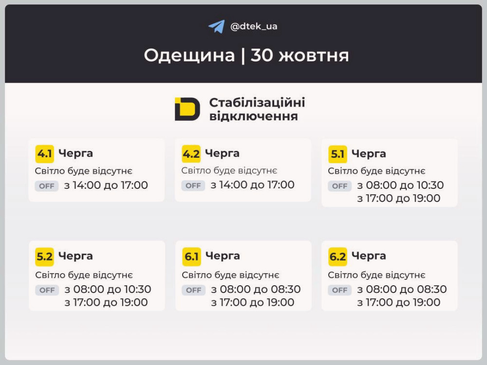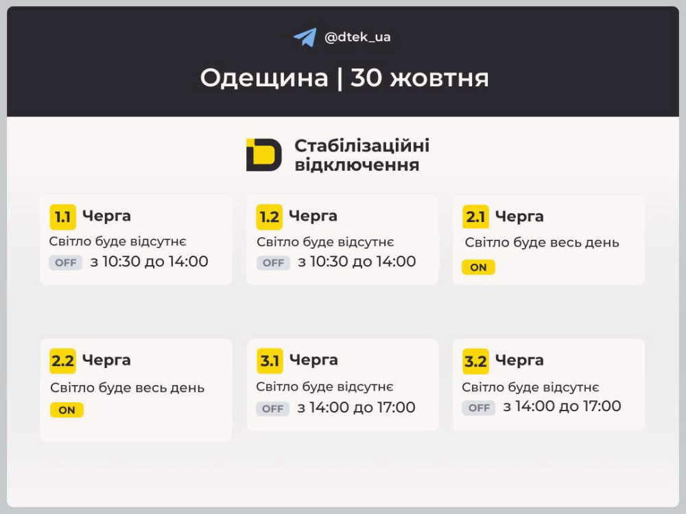 У випадку змін, оперативну інформацію можна знайти на телеграм-каналі ДТЕК.