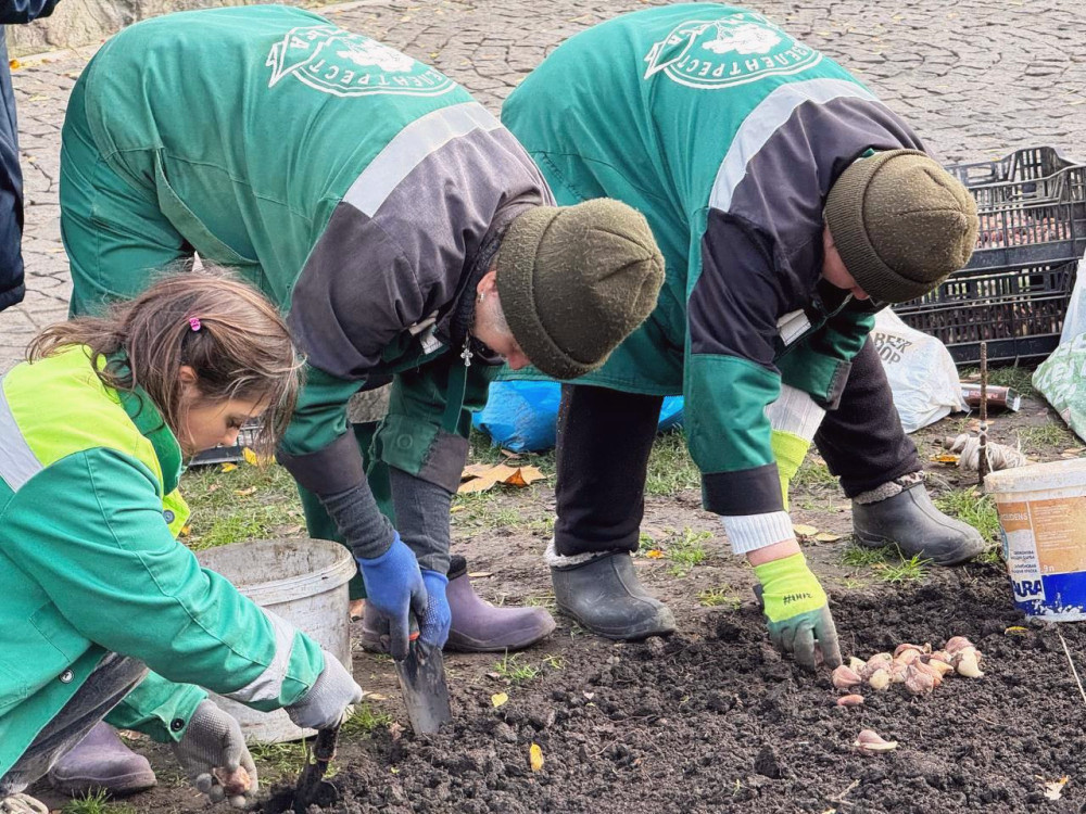 Озеленення триває і в інших парках міста, зокрема в парку Шевченка, де вже висадили 10200 тюльпанів.