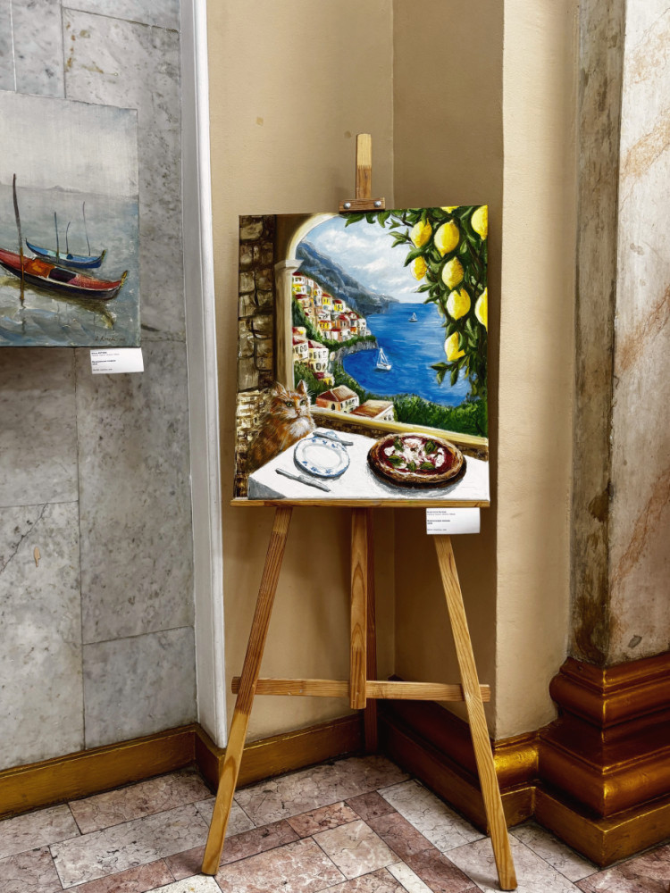 Експозиція включає 25 художніх творів, виконаних у різних стилях: олійний живопис, акварель, графіка. Це чудовий приклад культурного обміну між Україною та Італією.