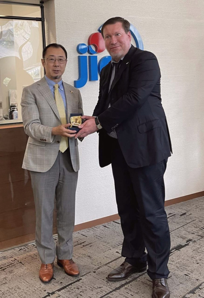 Генеральний директор департаменту Близького Сходу та Європи Тояма Кей провів зустріч з керівником Департаменту економічного розвитку Одеської міської ради Андрієм Розовим у головному офісі #JICA.