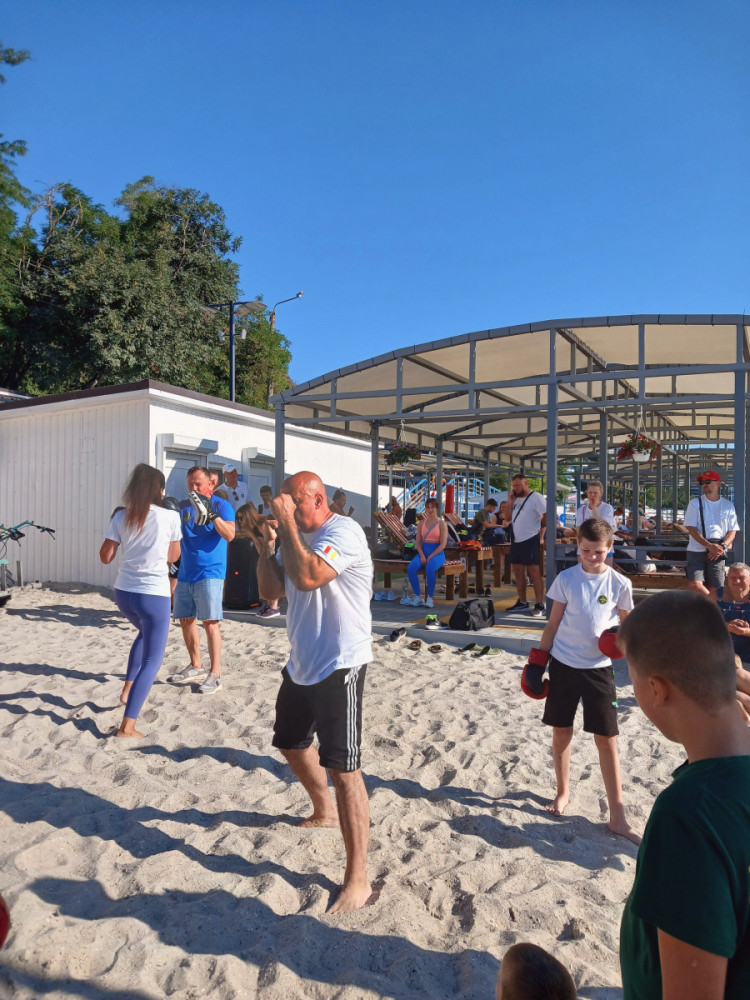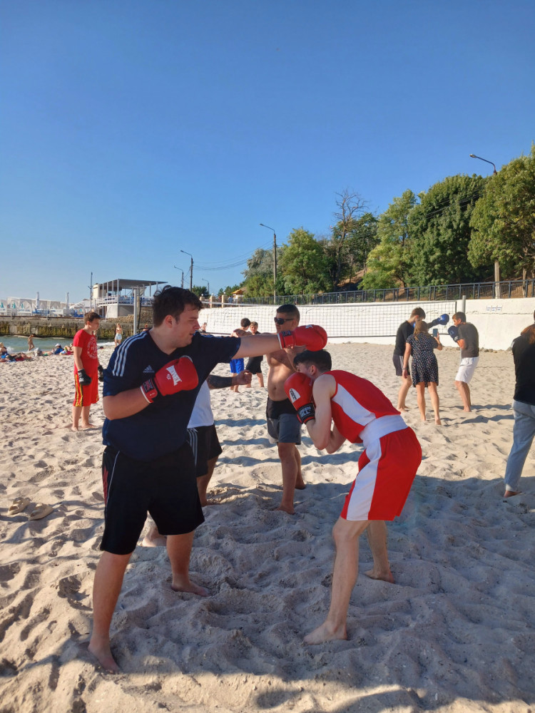 2 серпня 2025 року на муніципальному інклюзивному пляжі в Одесі, що розташований на 11-й станції Великого Фонтану, відбулося відкрите тренування з боксу.