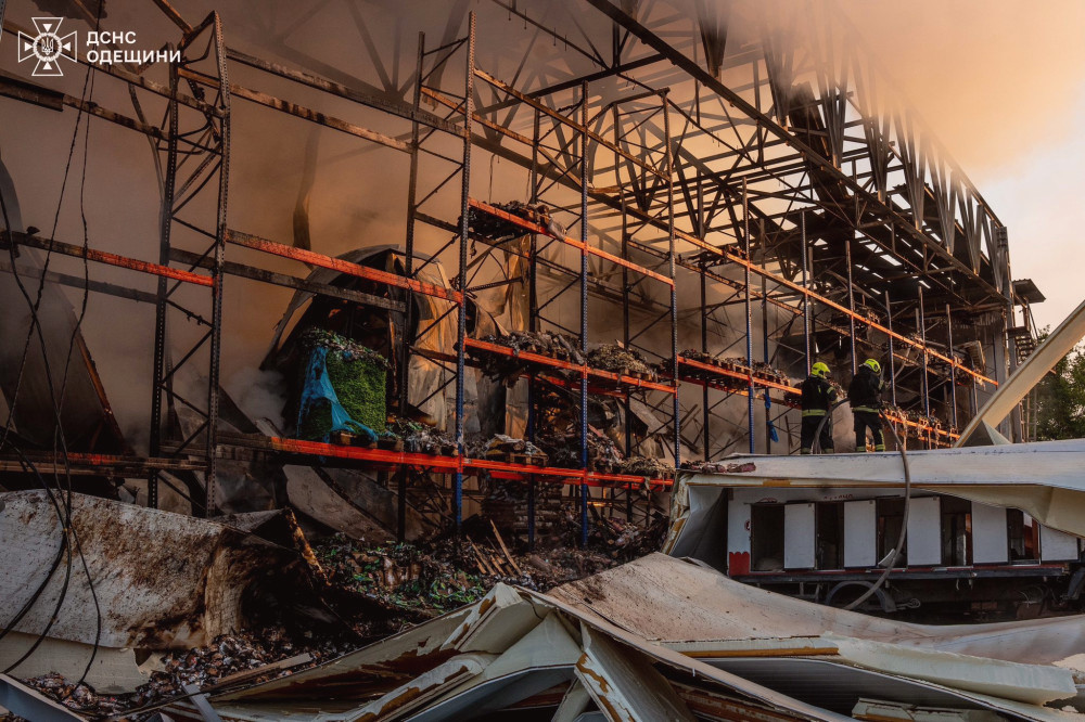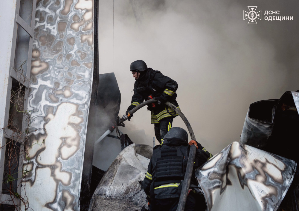 В Одесі знову відбулись атаки, які призвели до численних пожеж. Найбільша з них сталася на складі продуктів харчування, а також в приватному секторі згоріли два автомобілі, постраждали гаражі та житлові будинки.