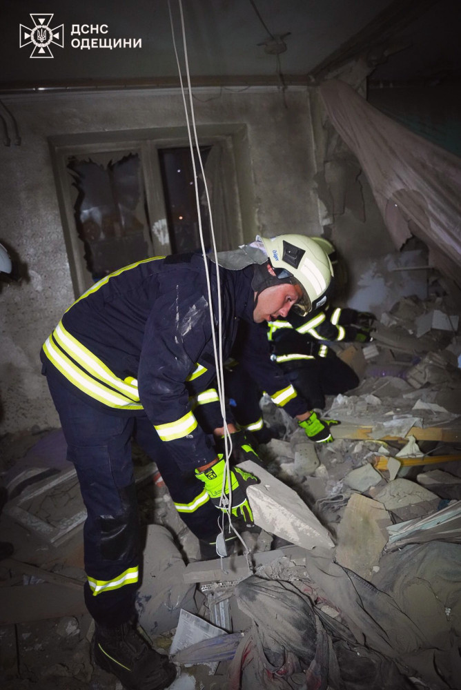 Рятувальні роботи тривають, а також ліквідація наслідків атаки на інших адресах, де сталося займання в приватному будинку і на автозаправній станції.
